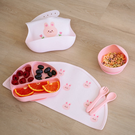 BPA-FREE 100% Silicone Bib and Mat Set - Bunny