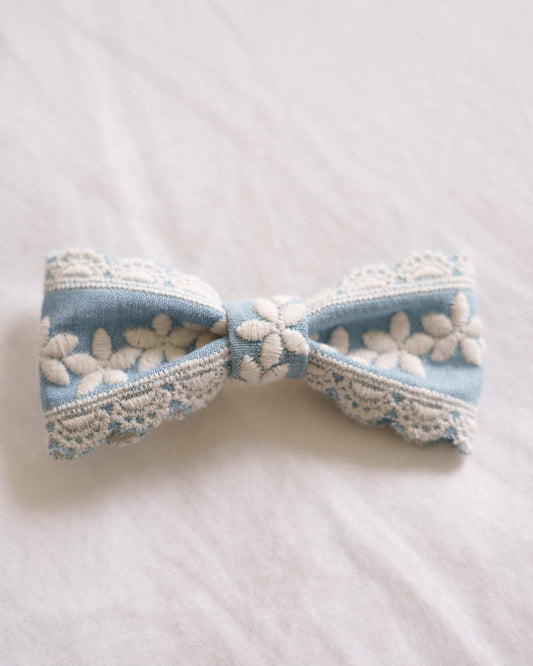 Embroidered Lace Bow Clip – 5cm