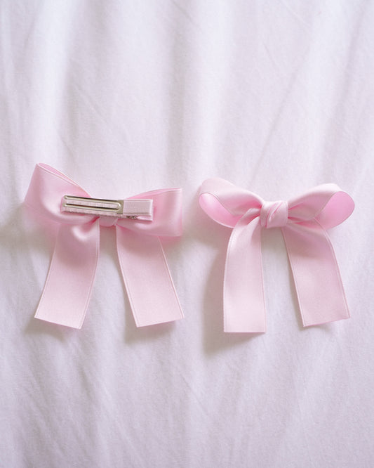 Classic Satin Bow Clip 2pc Set – Baby Pink