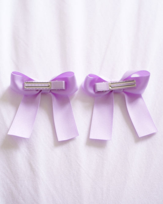 Classic Satin Bow Clip 2pc Set – Lilac