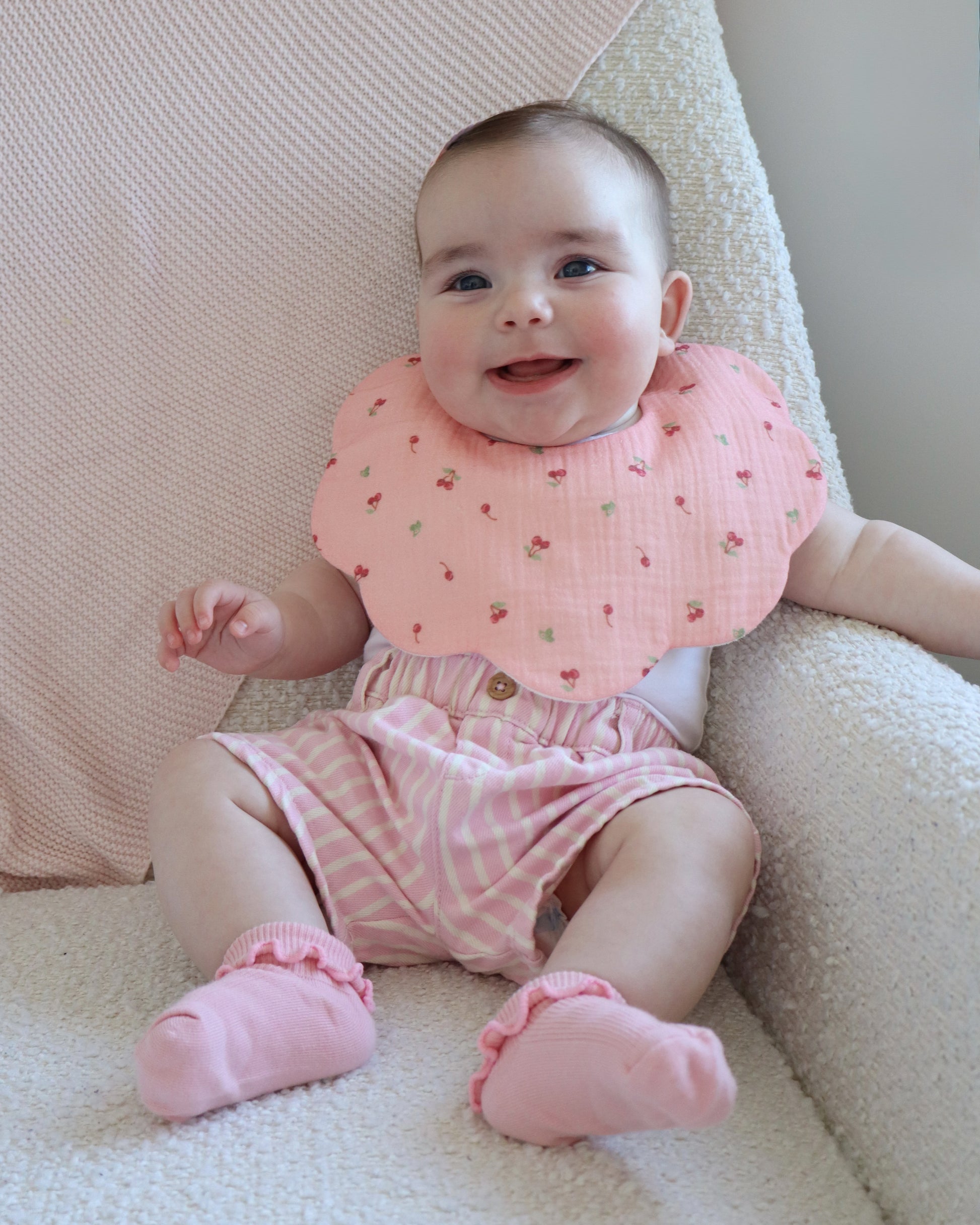 Organic Muslin 5-Layer Dribble Bib - Pink Cherries