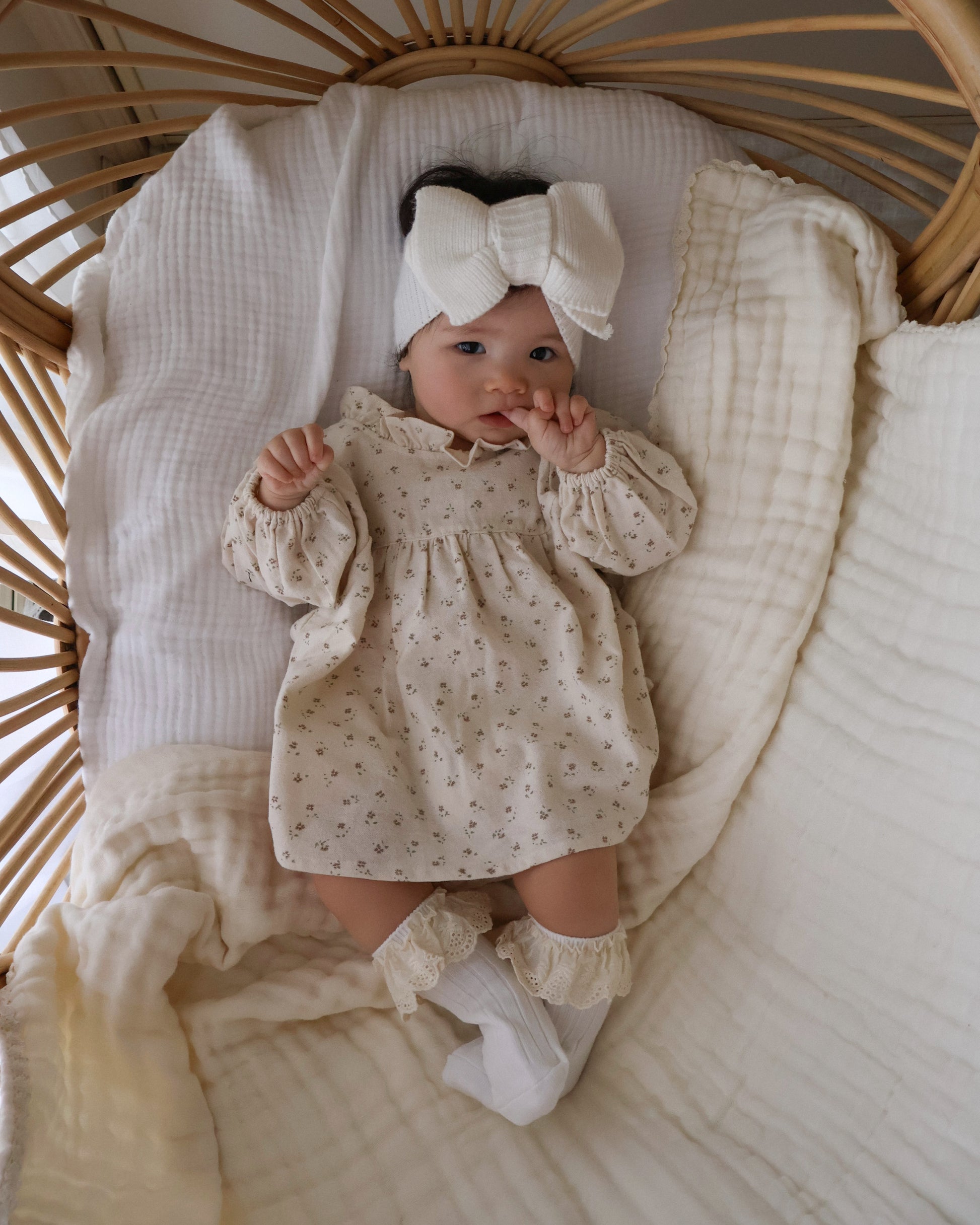 The Alette Floral Blouse is made from 100% soft cotton with a lightly brushed finish for extra warmth. It features a delicate all-over floral print, elasticated cuffs for a snug fit, and a ruffle neckline with a button closure at the back for easy dressing. Designed and made in Korea with quality craftsmanship, this blouse is breathable, comfortable, and perfect for layering during cooler seasons. Ideal for both everyday wear and special occasions.