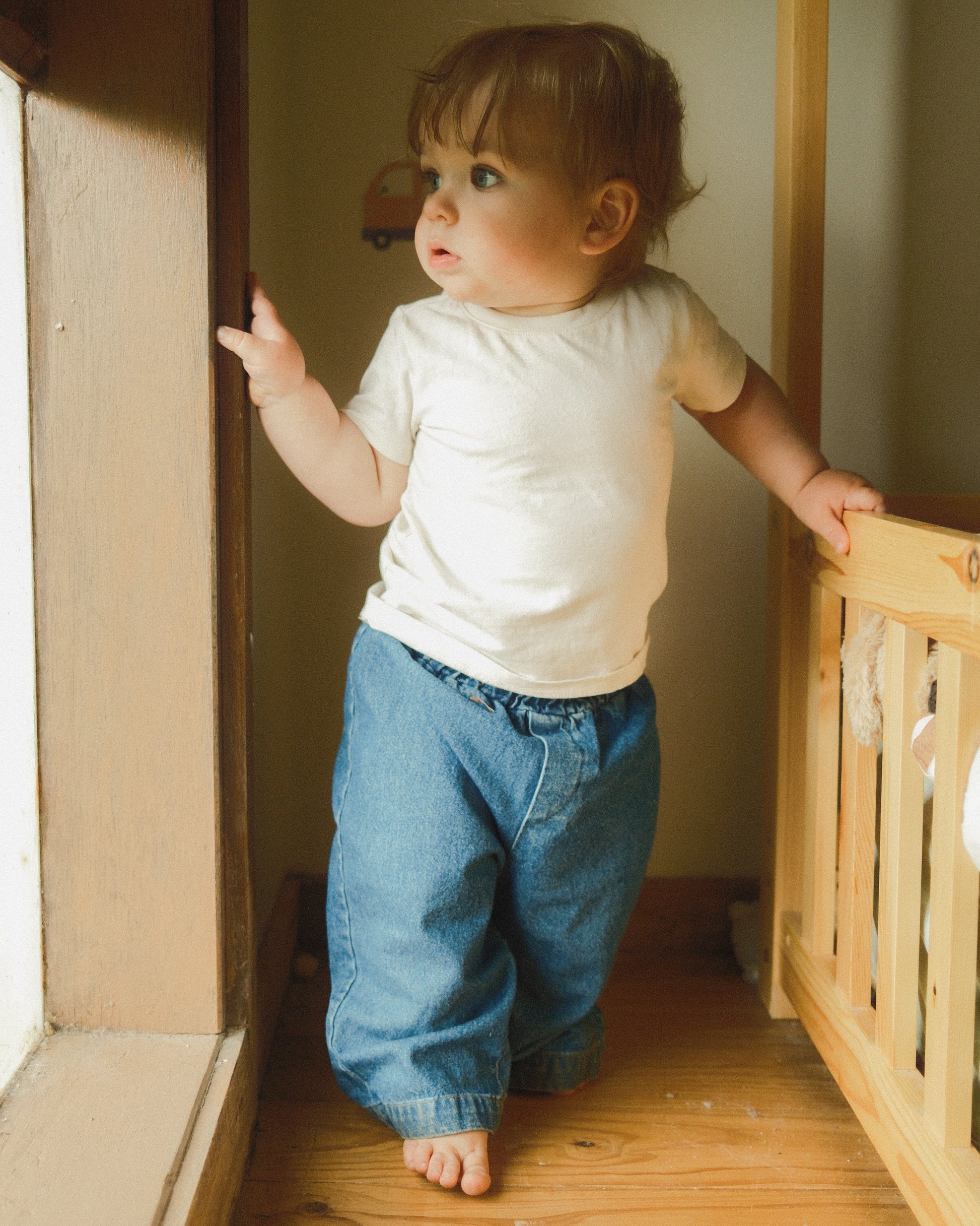 Meet the denim pants made for everyday adventures. Our Daily Relaxed Denim Pants are crafted from 100% cotton for all-day comfort and effortless style. The relaxed fit gives your little one room to move, crawl, and explore freely, while the soft, stretchy waistband ensures a gentle hug around the tummy.