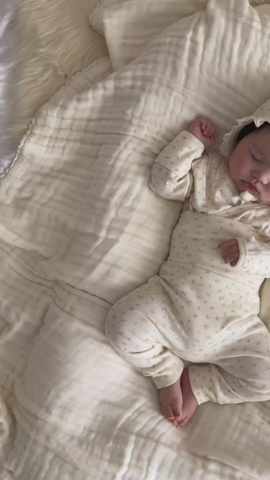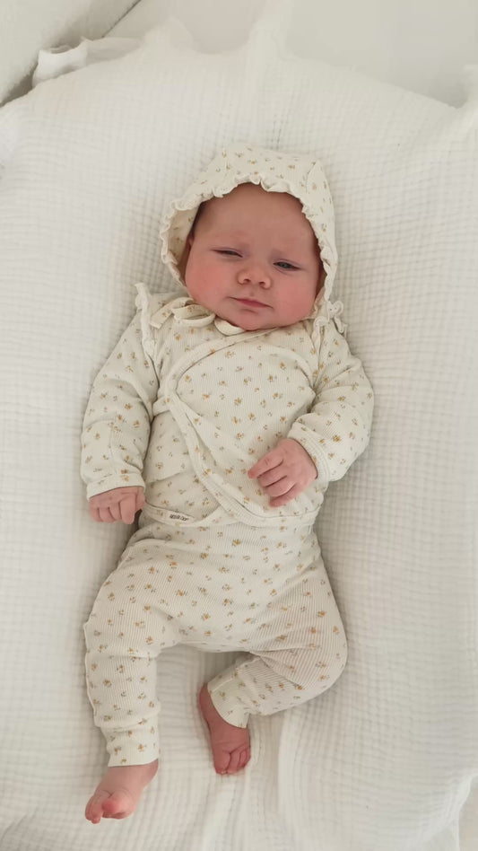 Matches perfectly with the Emelia Wrap Top and Emelia Bonnet