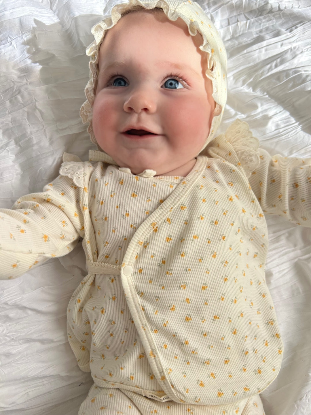 Perfectly pairs with the Emelia Anti-Colic Leggings and Emelia Bonnet for a complete look