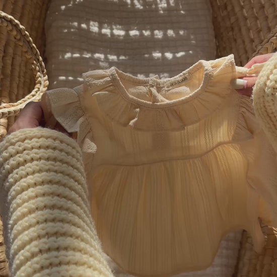 The Freja Blouse blends softness, elegance, and comfort. A must-have in your baby's wardrobe. With its ruffled collar and puffed sleeves, it offers a timeless, feminine silhouette that’s perfect for both everyday adventures and special occasions.